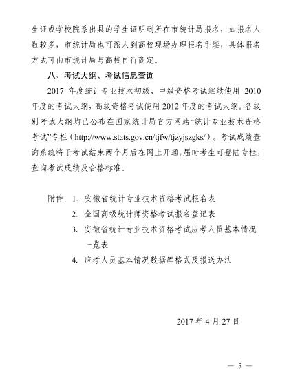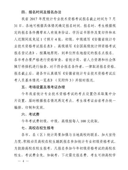 2017年安徽统计专业技术资格考试考务工作安排通知12-14