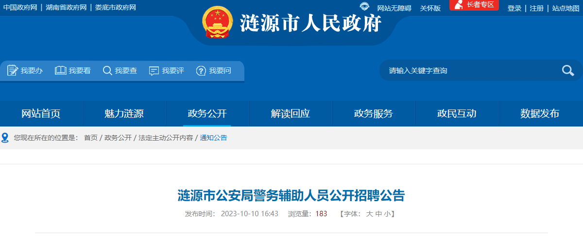 招聘信息在涟源市政府门户网、市公安局“双微平台”公开发布。