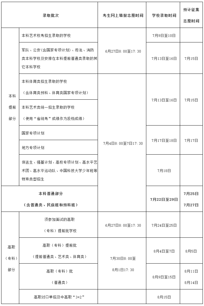 (二)各批次填报志愿及征集志愿的时间见附件,如有变动,以省考试局网站公布时间为准。