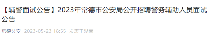 原文标题:2023年常德市公安局公开招聘警务辅助人员面试公告