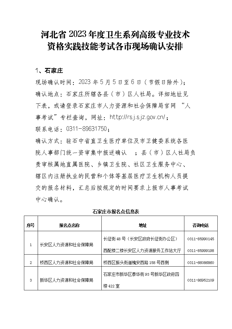 2023年河北卫生高级专业技术资格实践技能现场确认资格审核时间、地点及材料4月23日起04-23