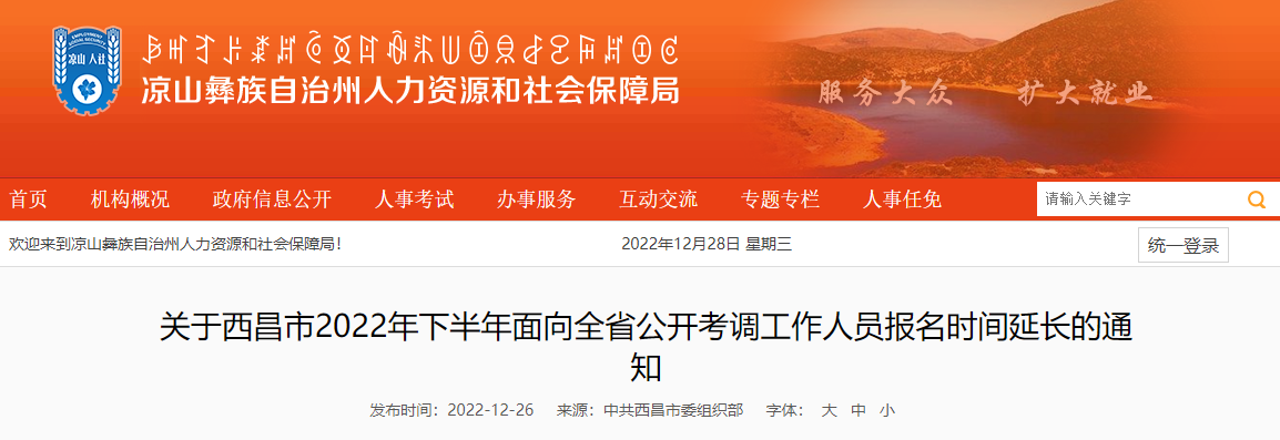 原文标题:关于西昌市2022年下半年面向全省公开考调工作人员报名时间延长的通知