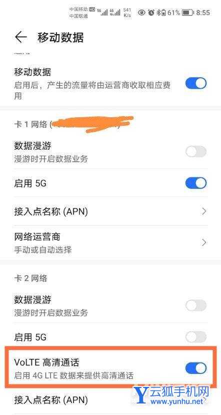 3、最后我们只要将【VoLTE高清通话】右侧的开关关闭即可