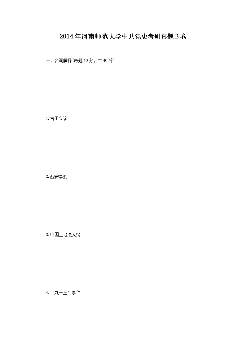 2014年河南师范大学中共党史考研真题B卷(Word版)06-09