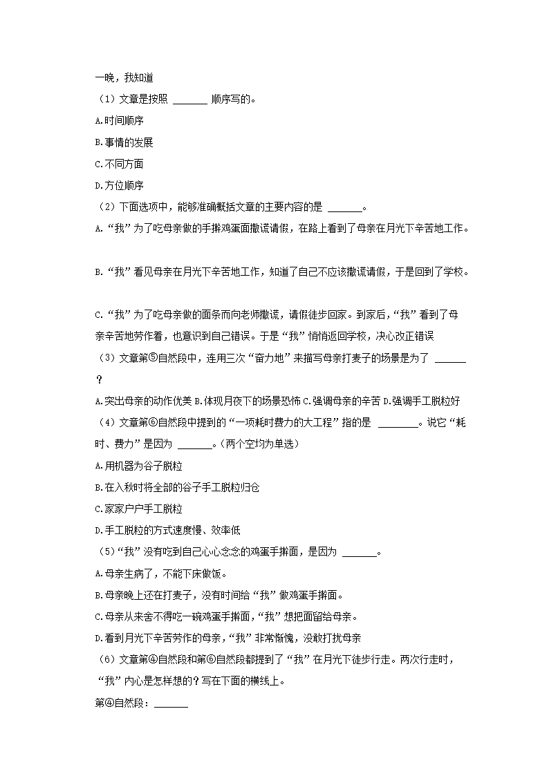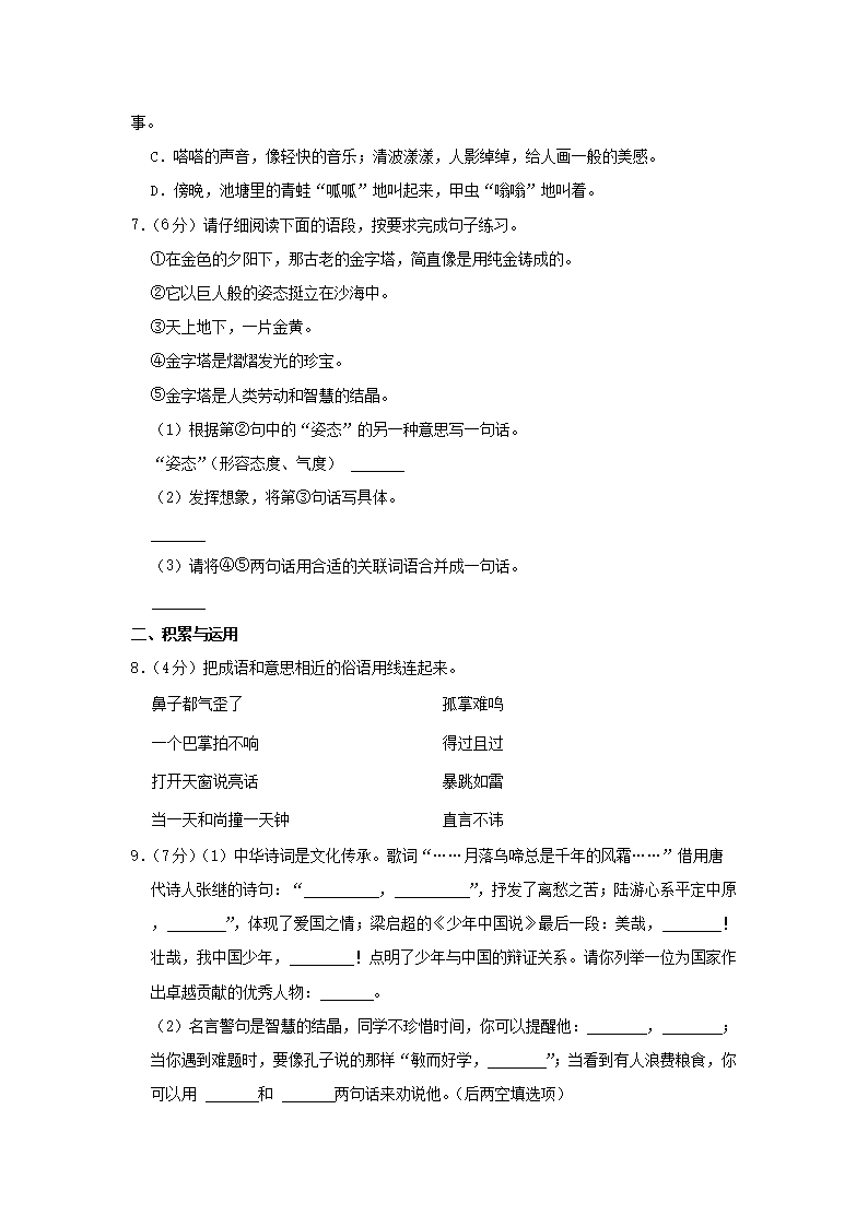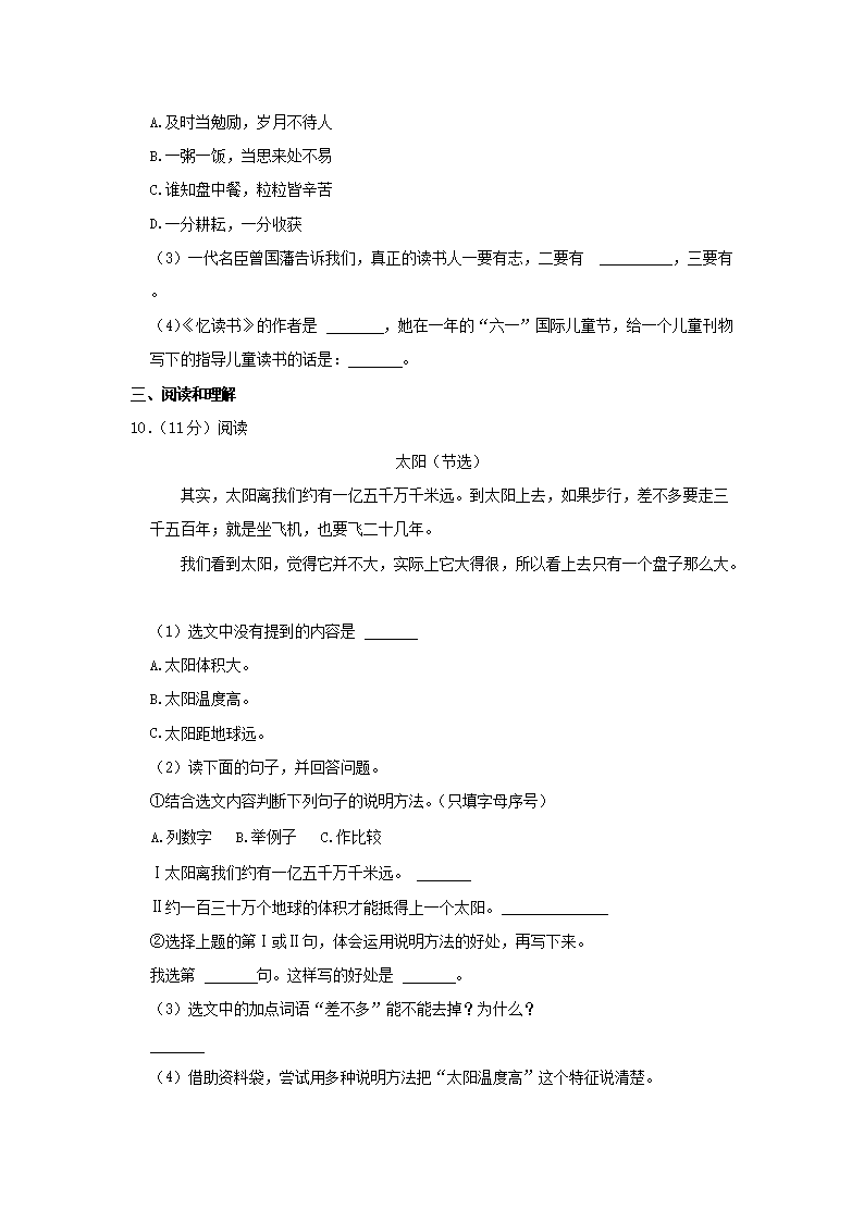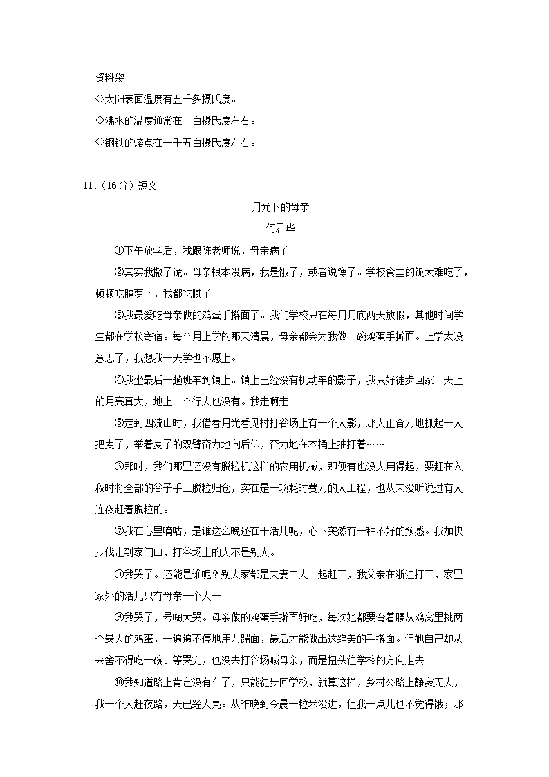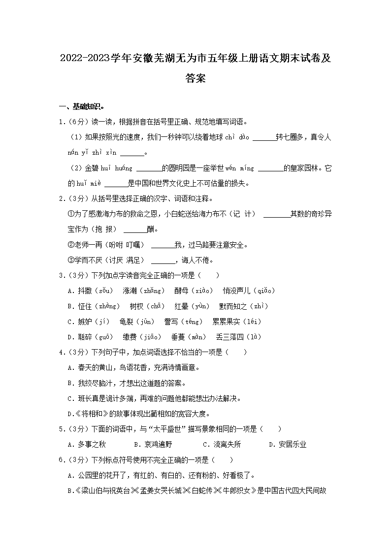 2022-2023学年安徽芜湖无为市五年级上册语文期末试卷及答案(Word版)08-26