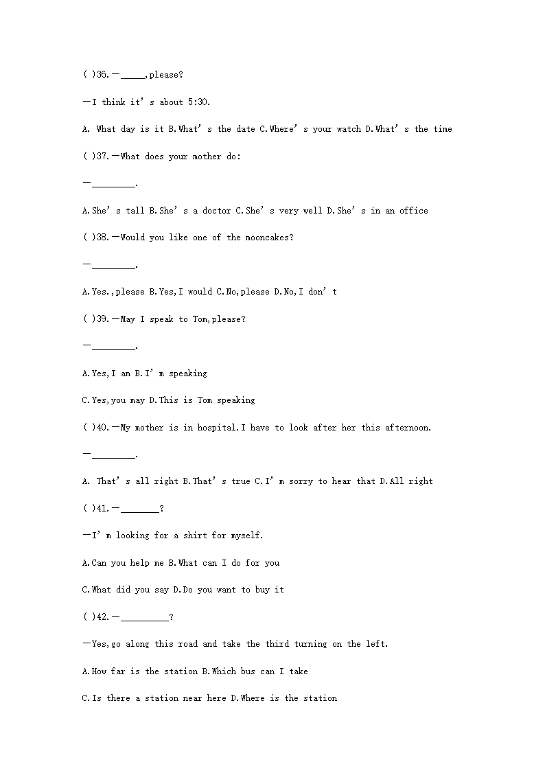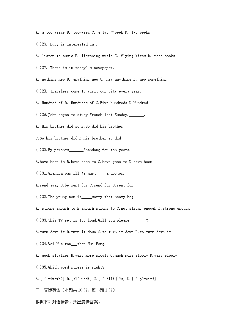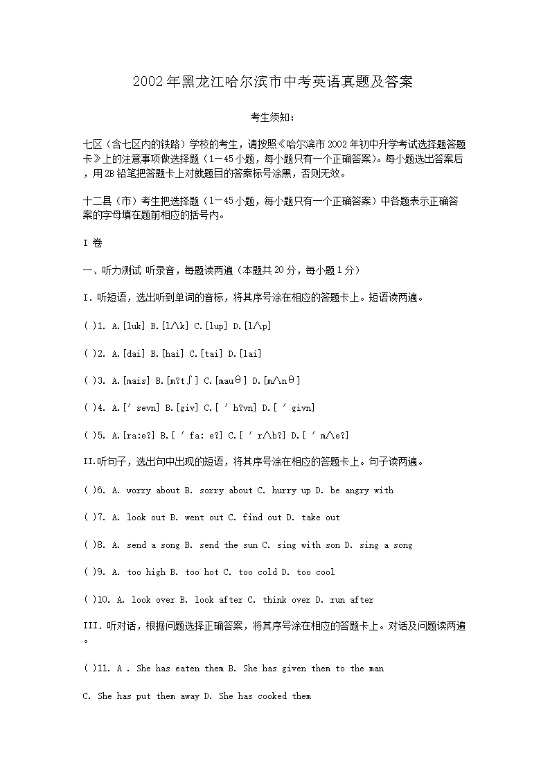 2002年黑龙江哈尔滨市中考英语真题及答案(Word版)05-30