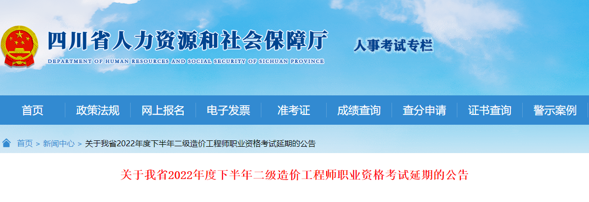 2022下半年四川二级造价工程师考试延期通知【具体时间另行通知】12-08