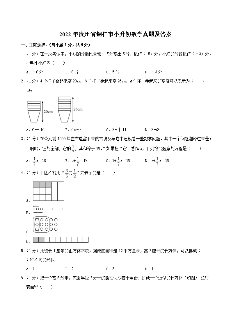 2022年贵州省铜仁市小升初数学真题及答案(Word版)07-01