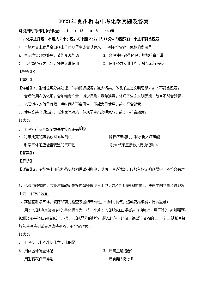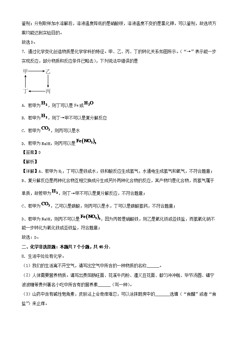 2023年贵州黔南中考化学真题及答案(Word版)07-01
