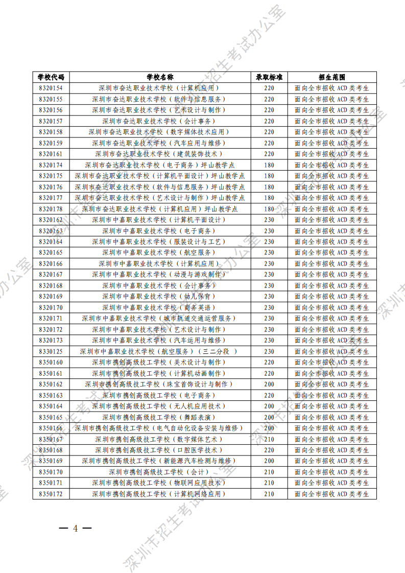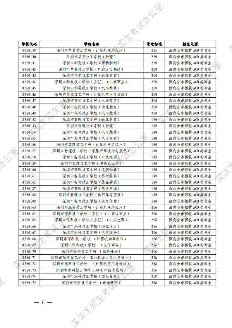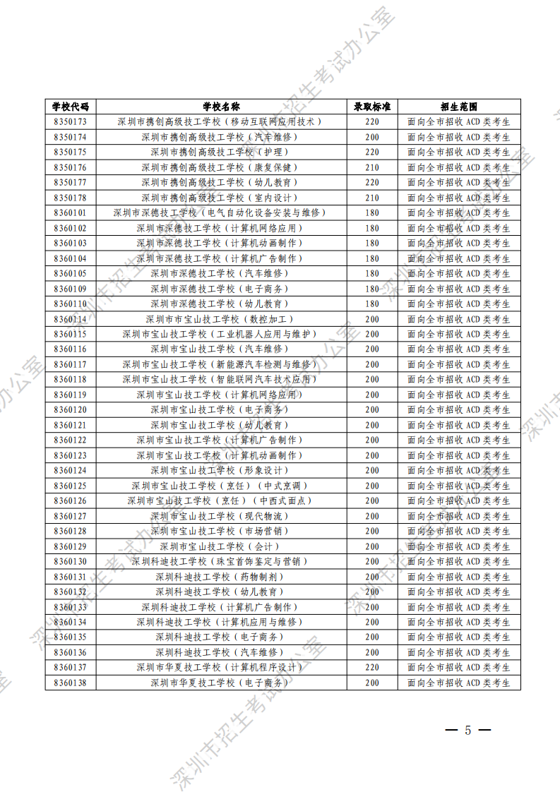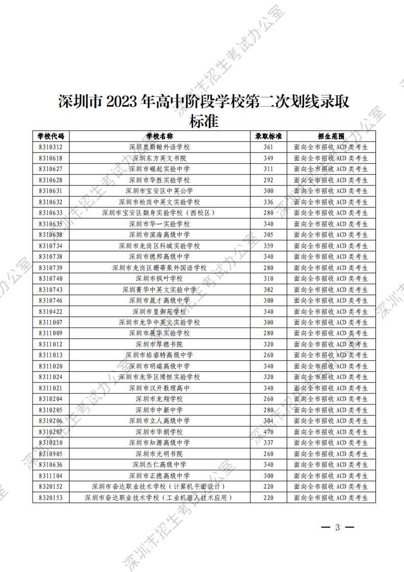 深圳市2023年高中阶段学校第二次划线录取的录取标准现予以公布。