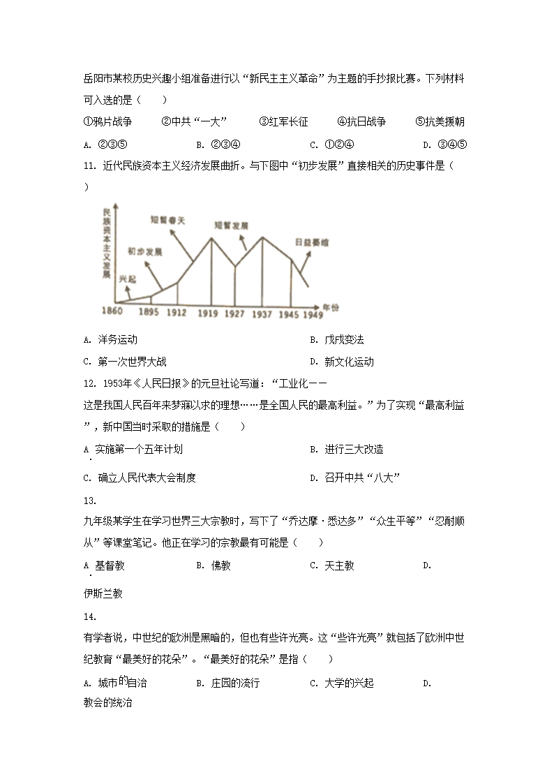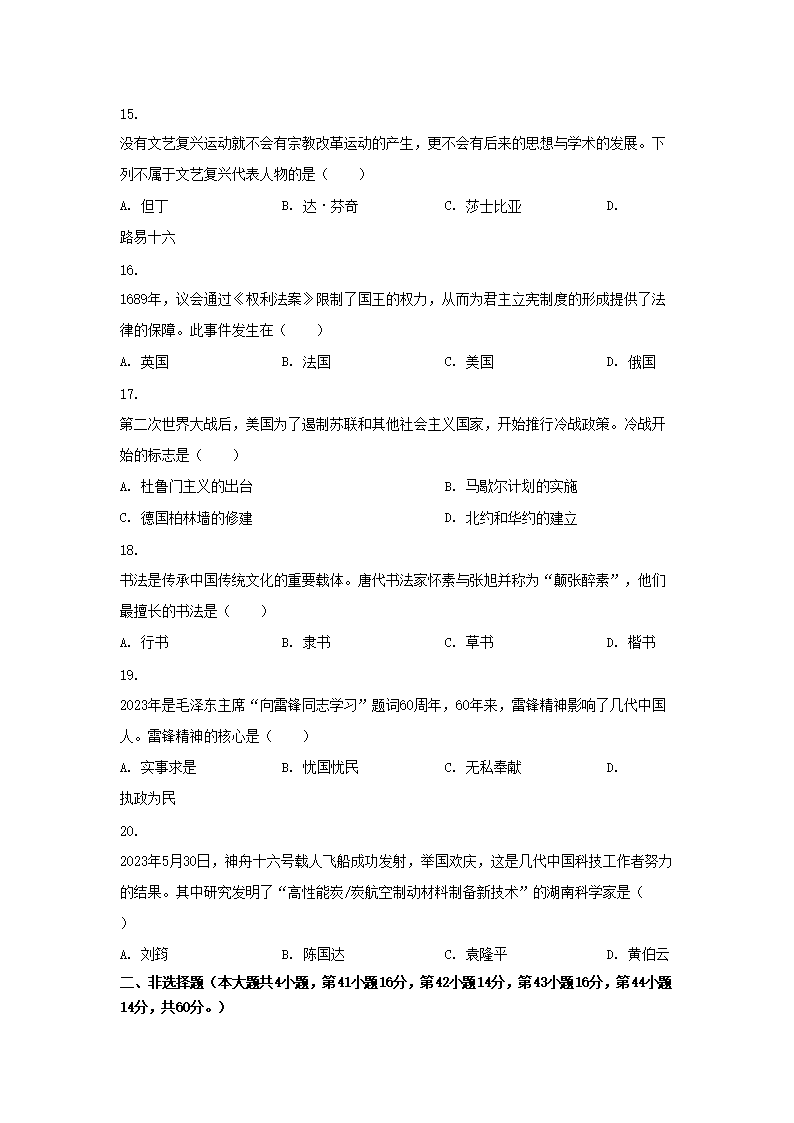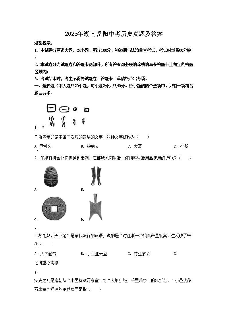 2023年湖南岳阳中考历史真题及答案(Word版)07-19