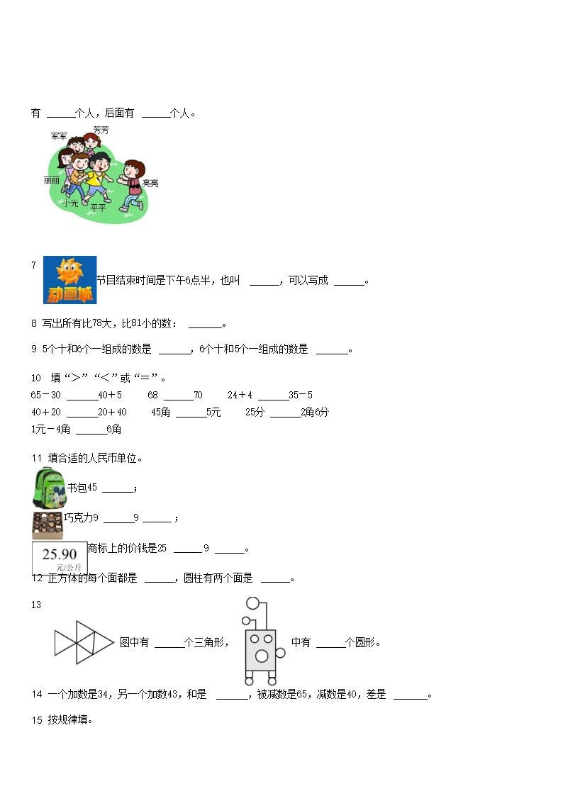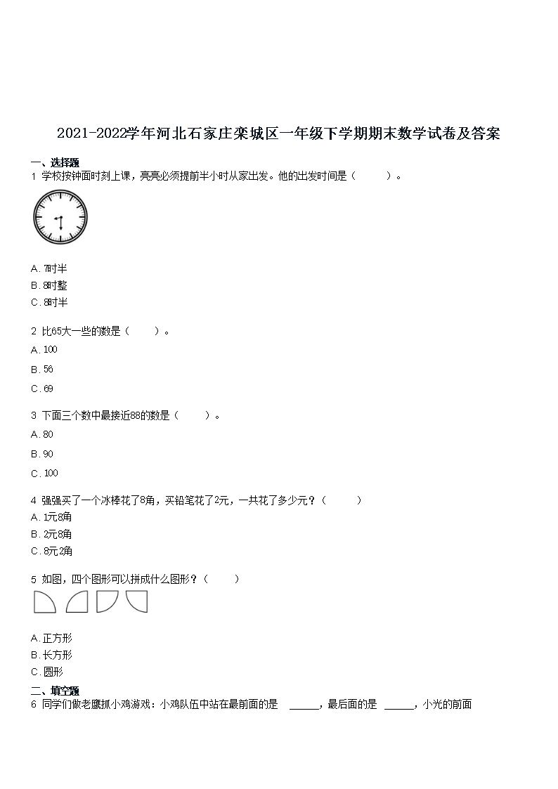2021-2022学年河北石家庄栾城区一年级下学期期末数学试卷及答案(Word版)07-06