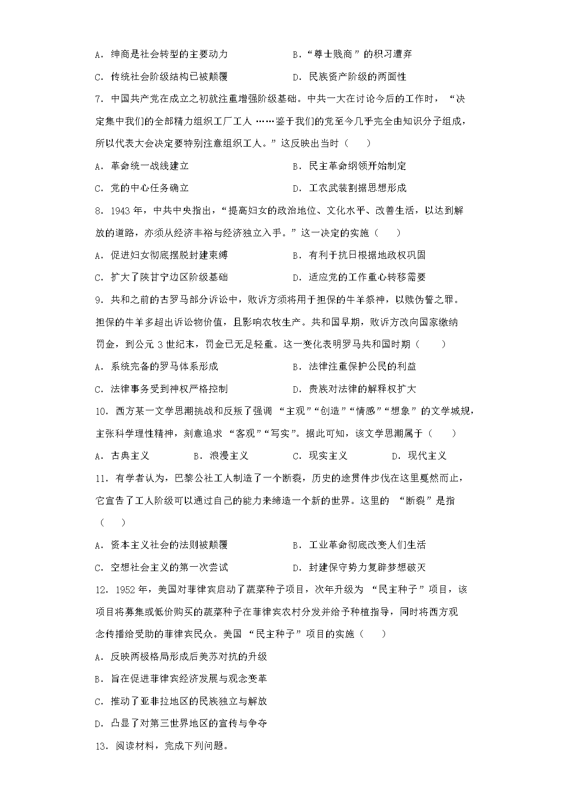 2023年全国甲卷高考历史真题及答案(Word版)06-12