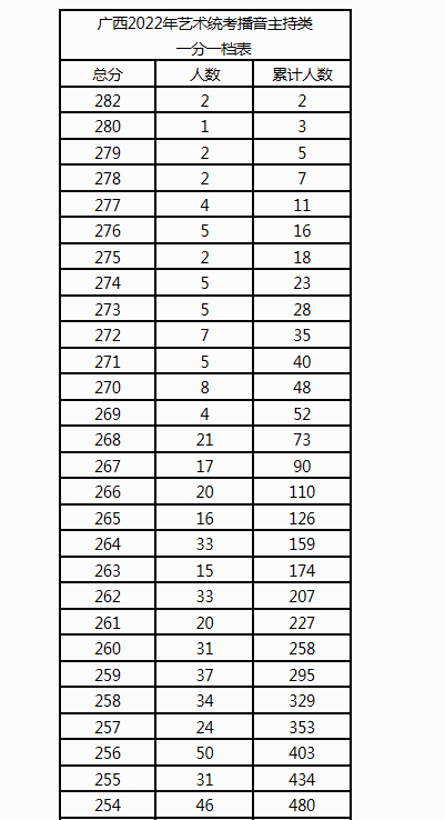 【#艺术高考# 导语】©文档大全网从广西招生考试院了解到,广西2022年艺术统考播音主持类一分一档表,具体如下: