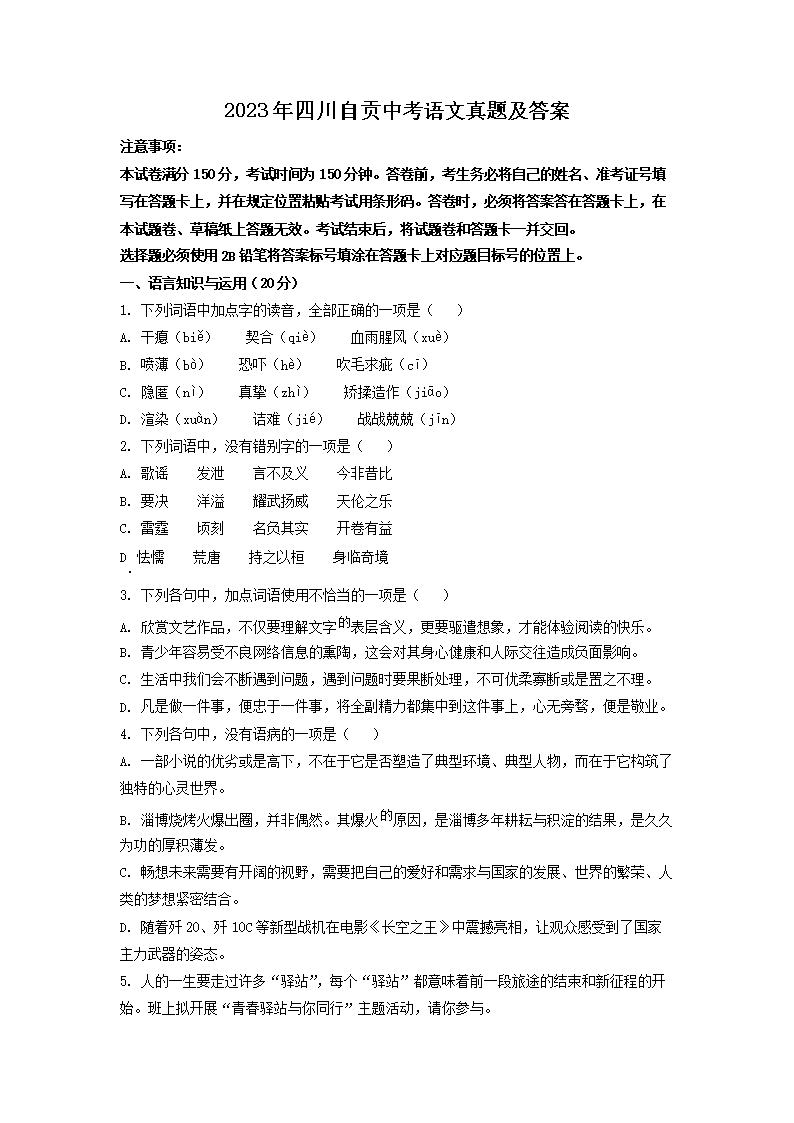 2023年四川自贡中考语文真题及答案(Word版)06-16