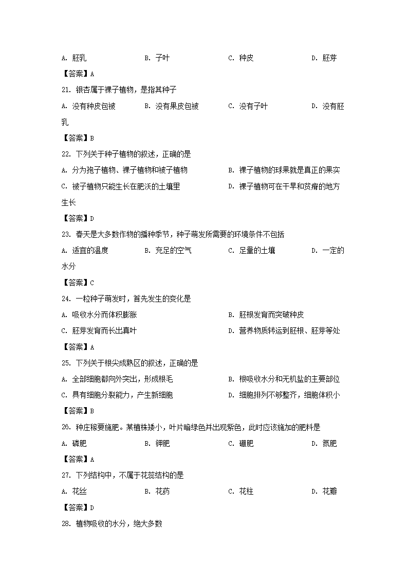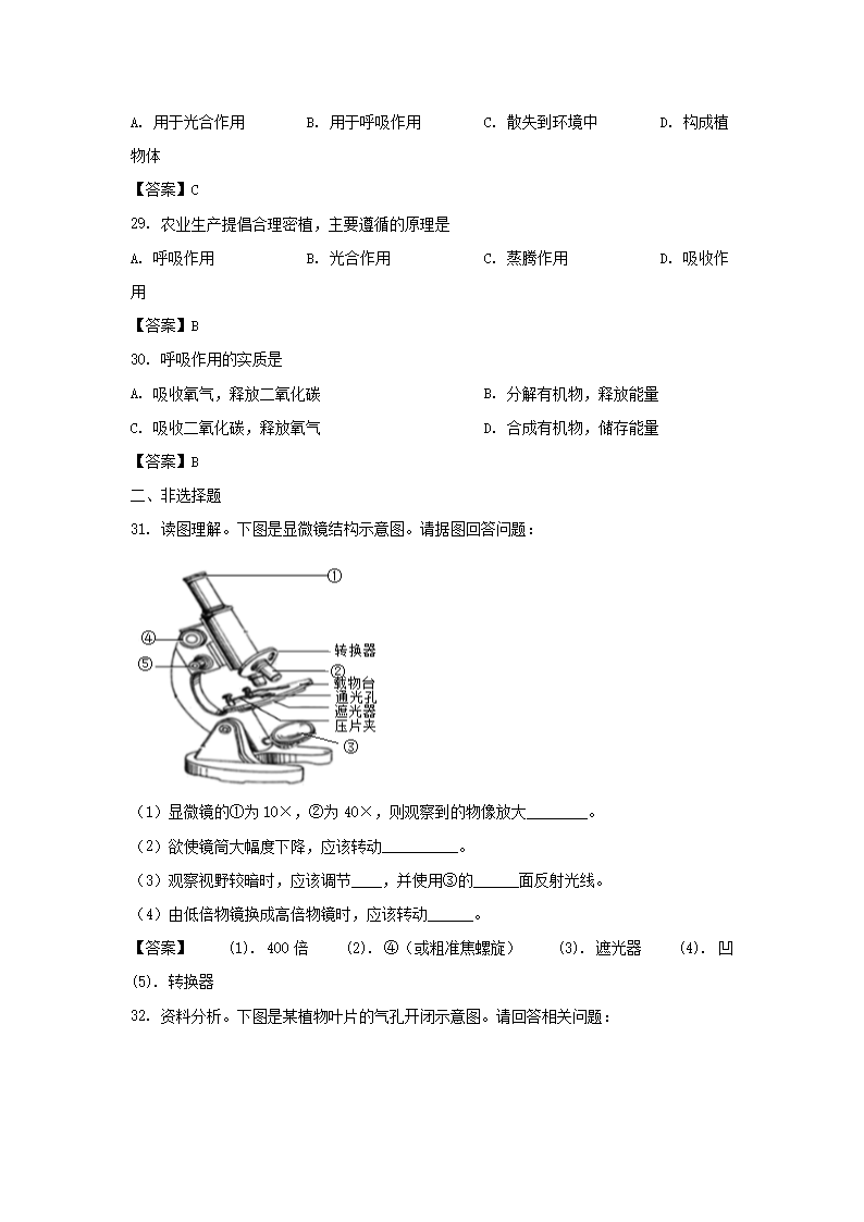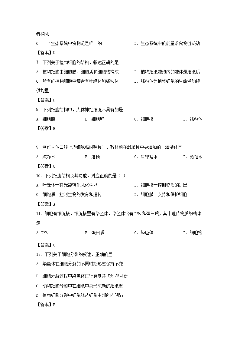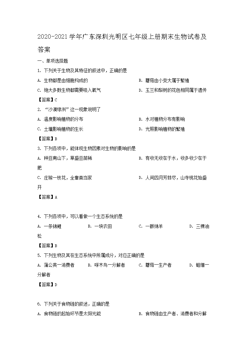 【文档预览】 文档大全网整理发布2020-2021学年广东深圳光明区七年级上册期末生物试卷及答案(Word版),前五页预览如下: