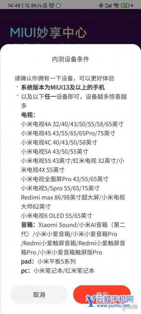 从泄露信息来看,该功能需要用户的手机系统在MIUI 13以上,并当前仅支持小米自家的电视、音箱、Pad和笔记本,并不支持其他米家产品。