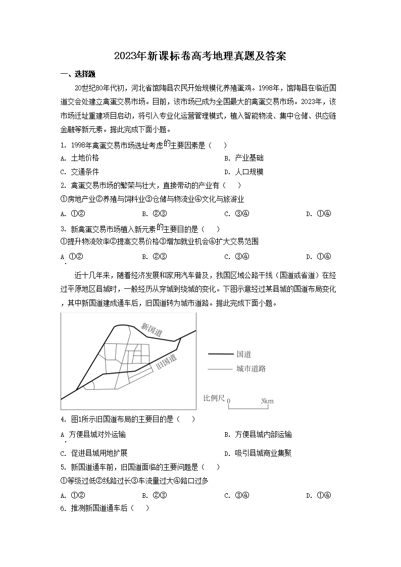 【文档预览】 文档大全网整理发布2023年新课标卷高考地理真题及答案(Word版),前五页预览如下: