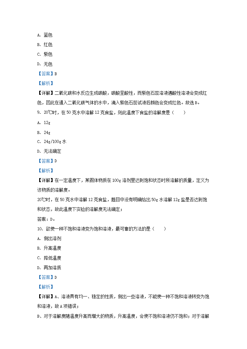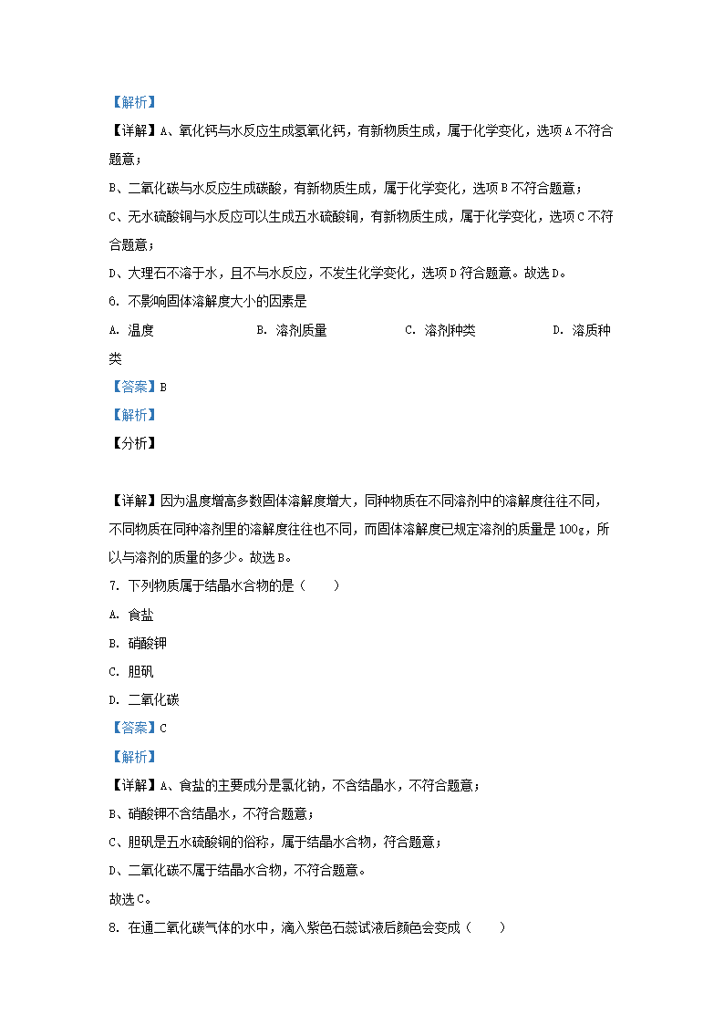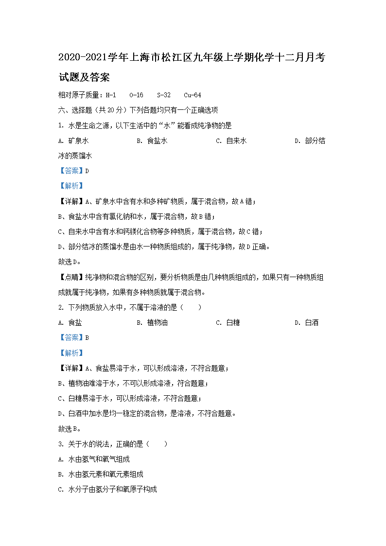 2020-2021学年上海市松江区九年级上学期化学十二月月考试题及答案(Word版)10-20