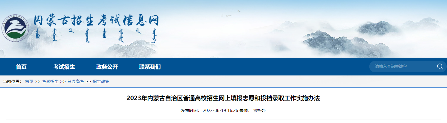 2023年内蒙古普通高校招生网上填报志愿和投档录取工作实施办法06-20