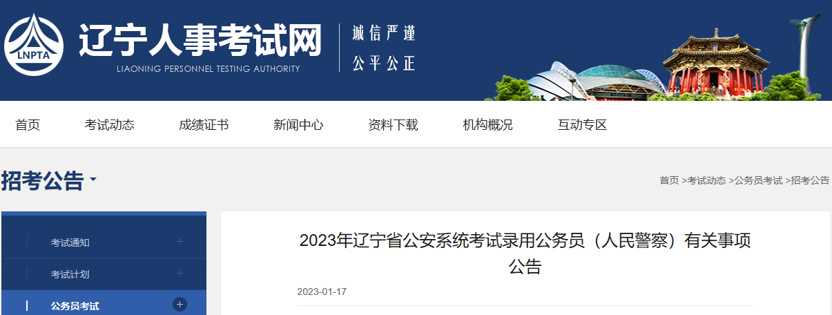 原文标题:2023年辽宁省公安系统考试录用公务员(人民警察)有关事项公告