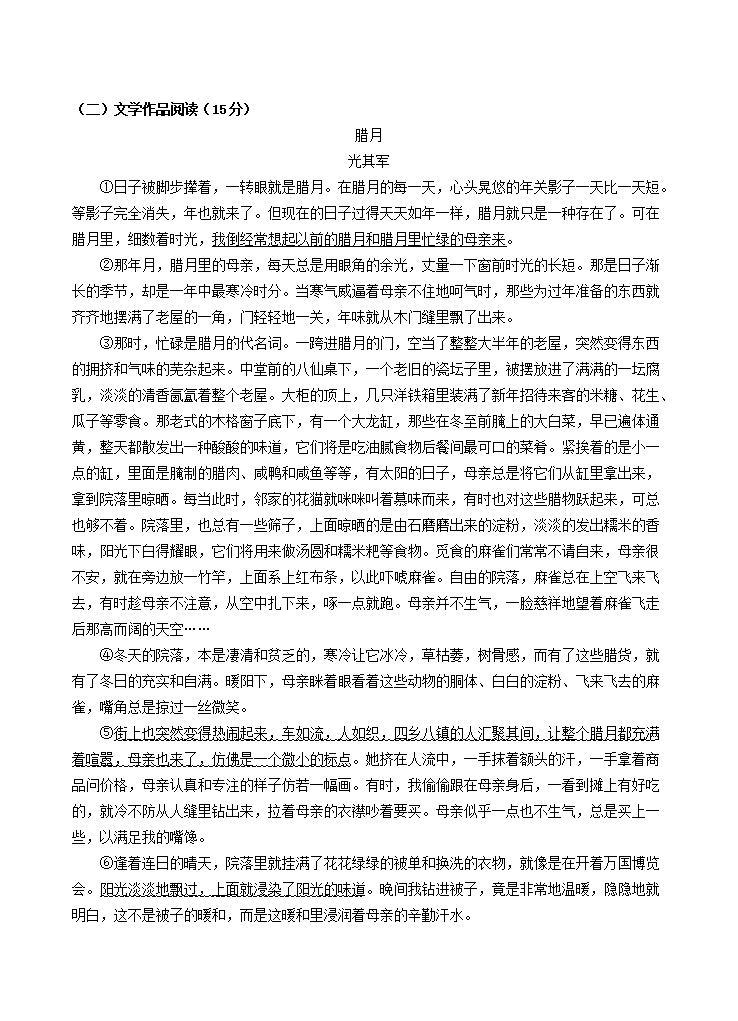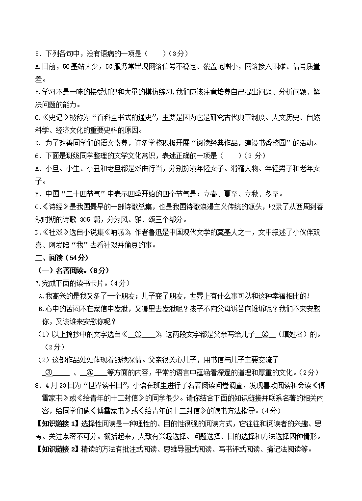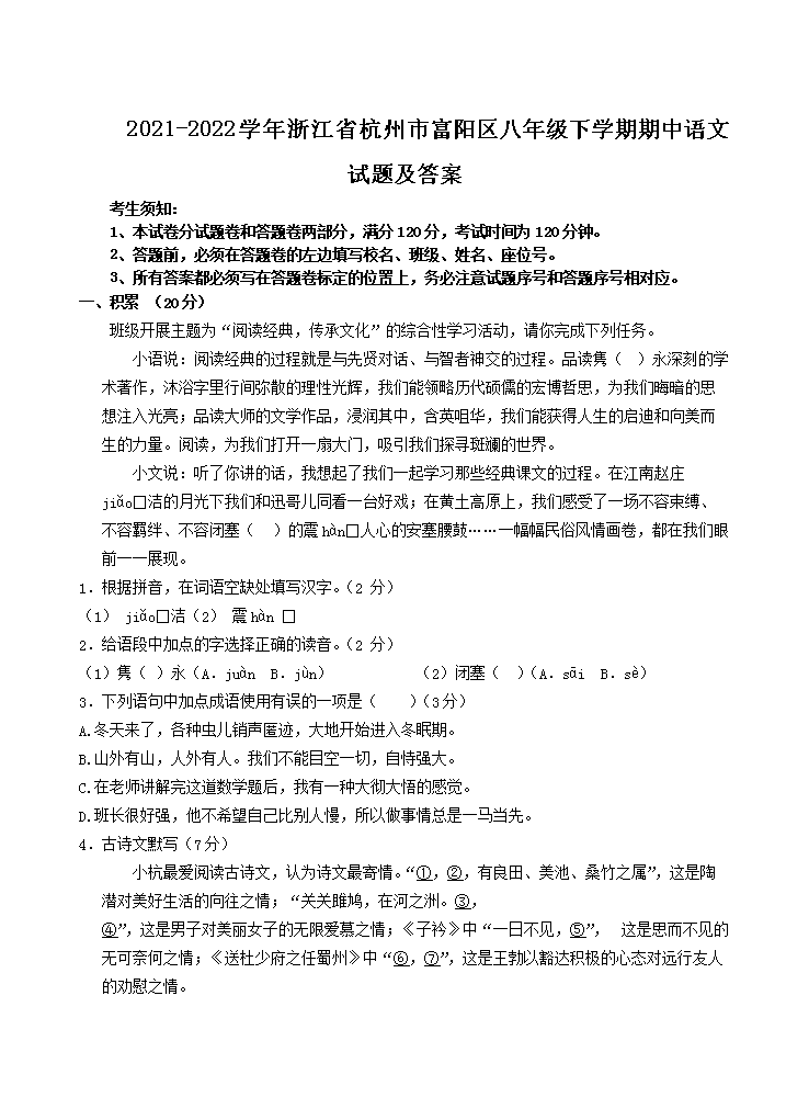 2021-2022学年浙江省杭州市富阳区八年级下学期期中语文试题及答案(Word版)10-21