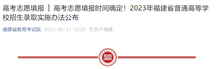 【#高考# 导语】©文档大全网从福建省教育考试院了解到,根据《2023年福建省普通高等学校招生录取实施办法》得知,2023年福建高考志愿填报时间现已公布,相关事宜如下: