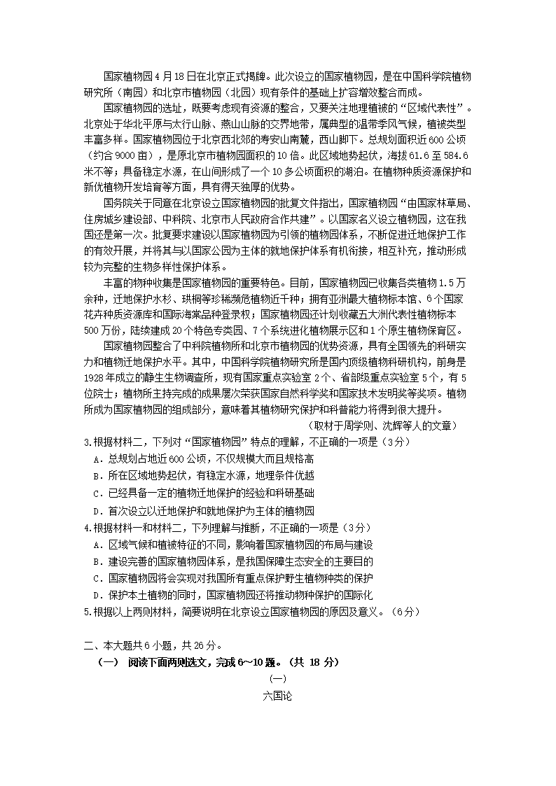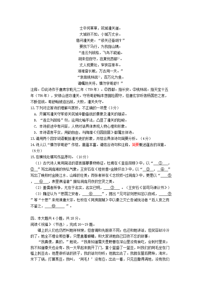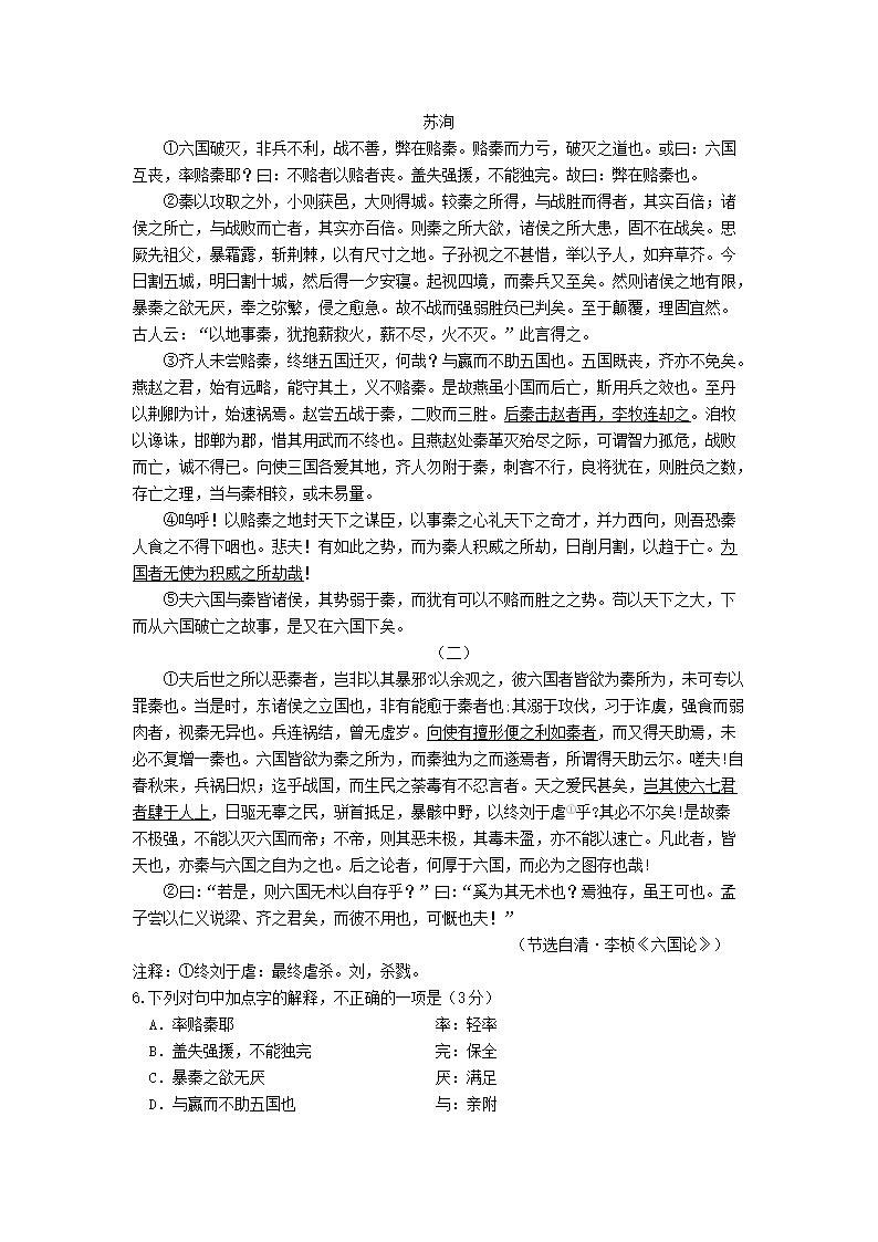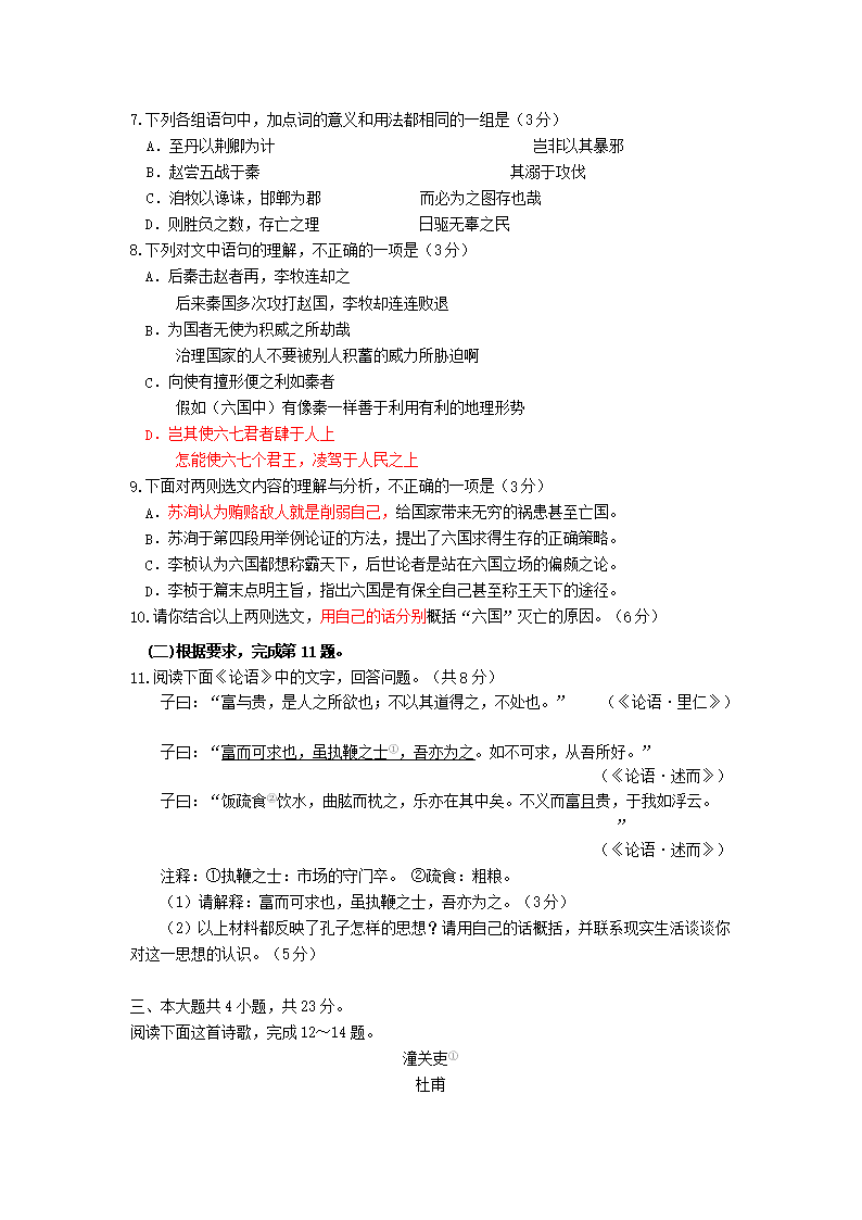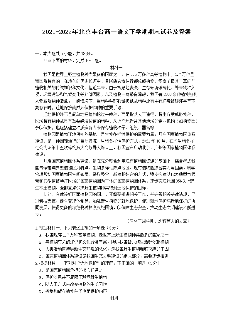 2021-2022年北京丰台高一语文下学期期末试卷及答案(Word版)07-28