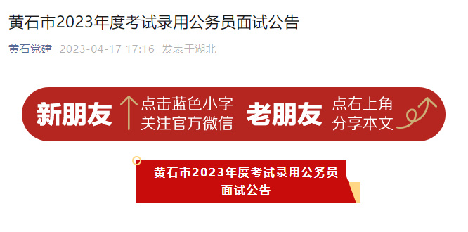 原文标题:黄石市2023年度考试录用公务员面试公告