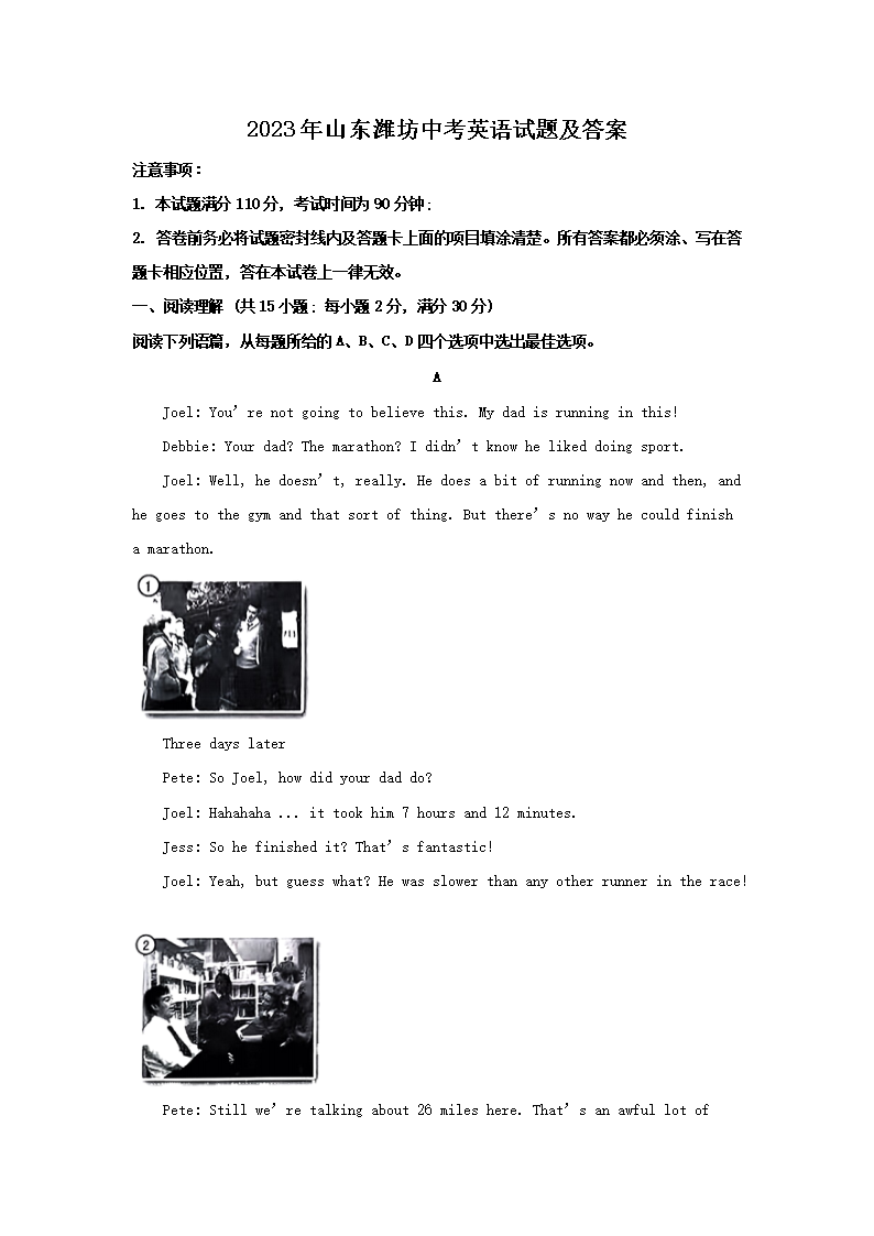2023年山东潍坊中考英语试题及答案(Word版)07-26