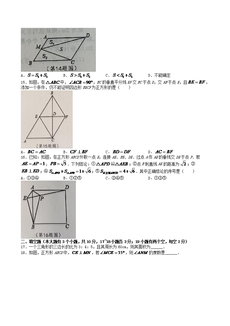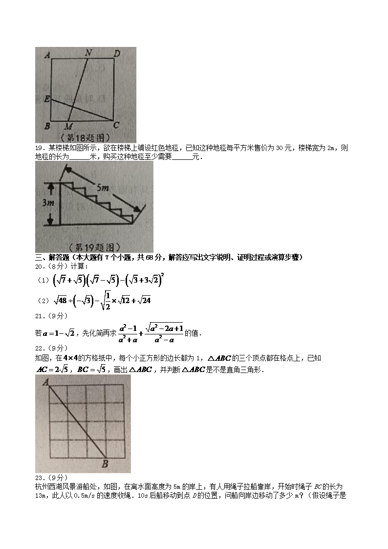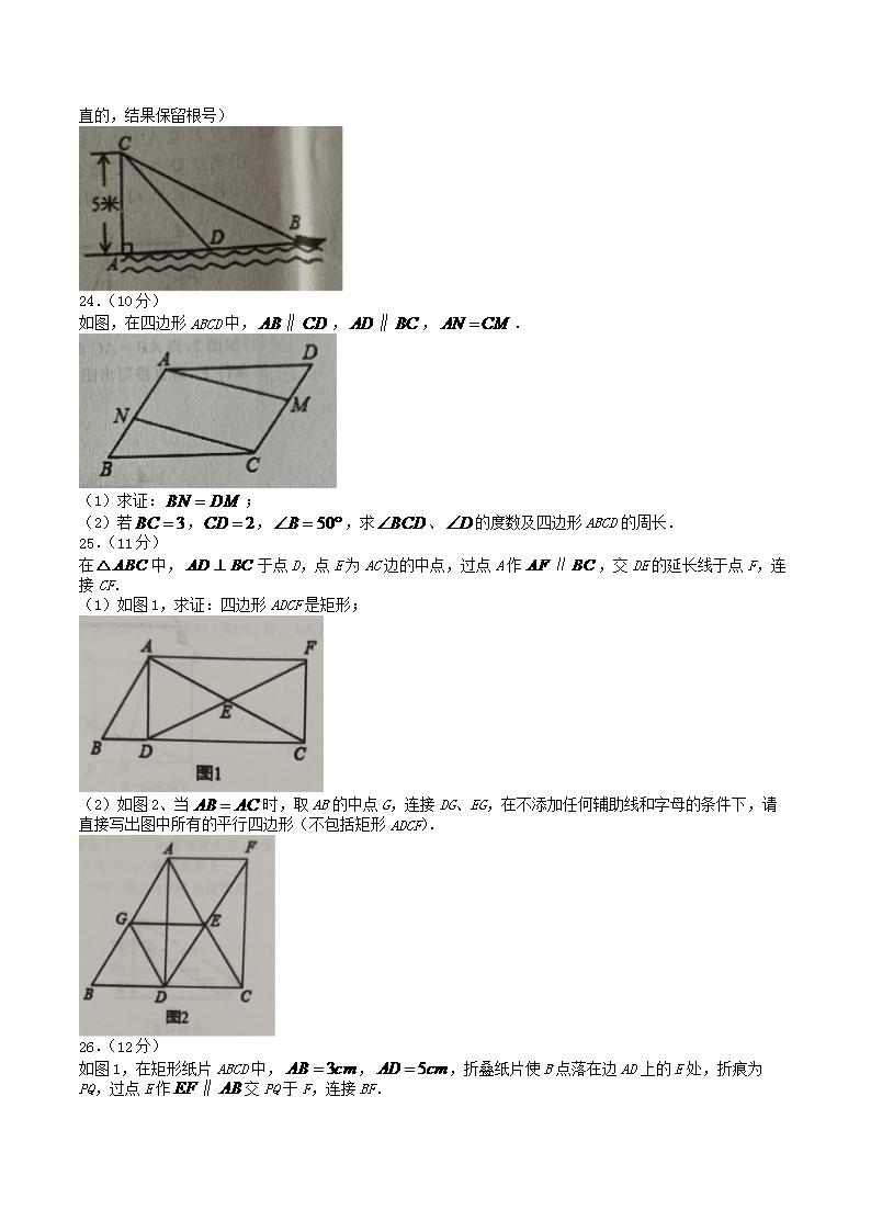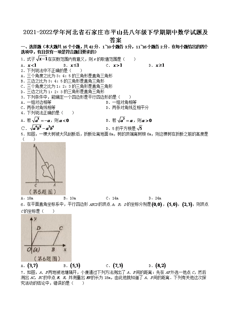 2021-2022学年河北省石家庄市平山县八年级下学期期中数学试题及答案(Word版)10-18
