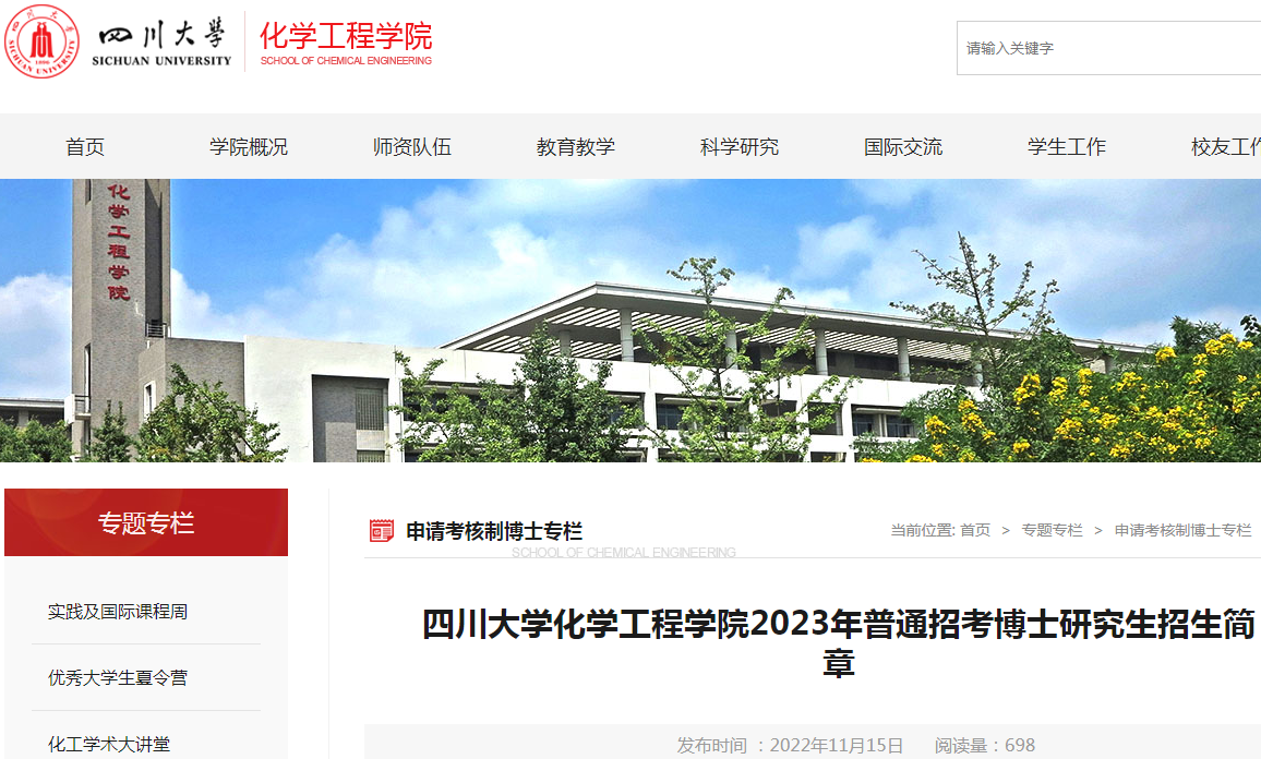 四川大学化学工程学院2023年普通招考博士研究生招生简章11-17