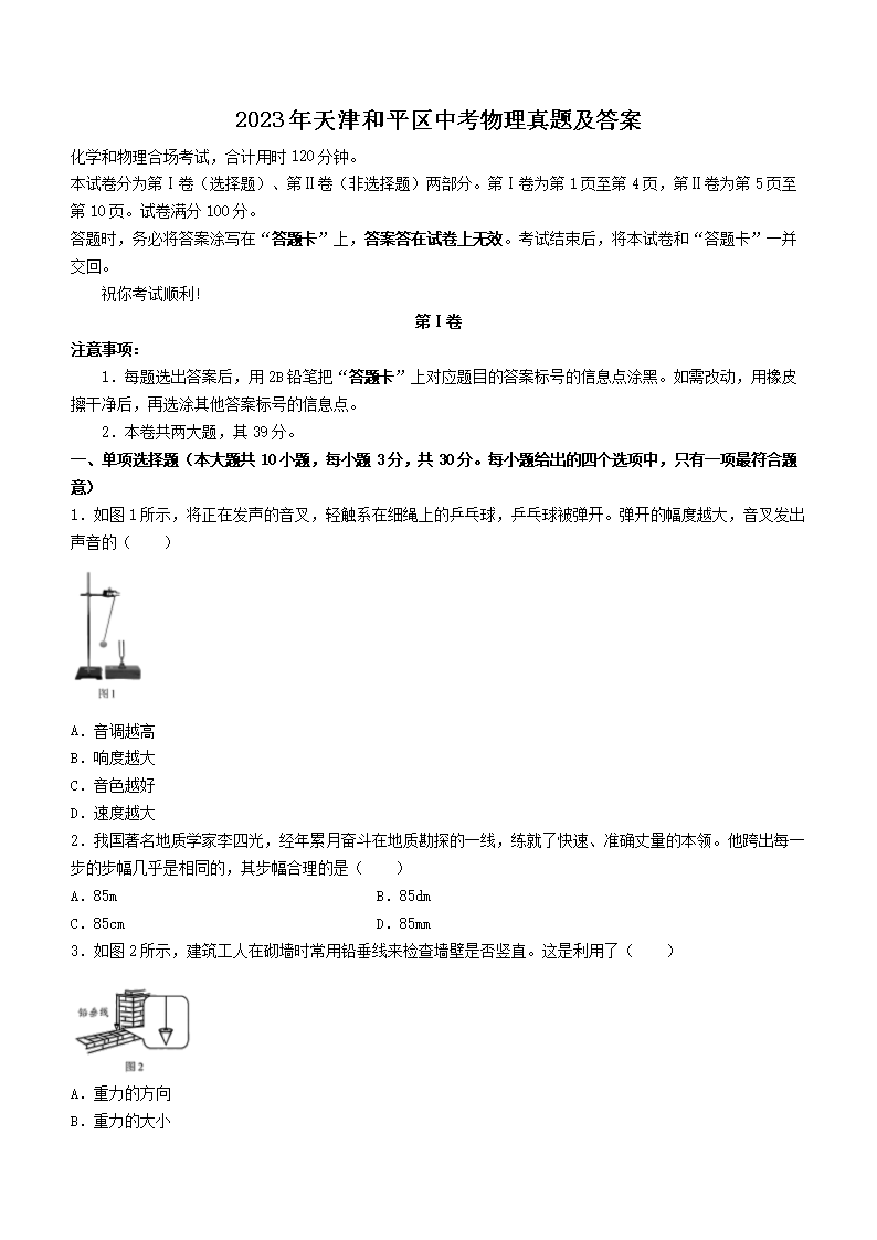 2023年天津和平区中考物理真题及答案(Word版)06-21