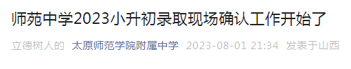 山西太原师苑中学2023小升初录取现场确认工作时间(8月3日8:30—11:30)08-02