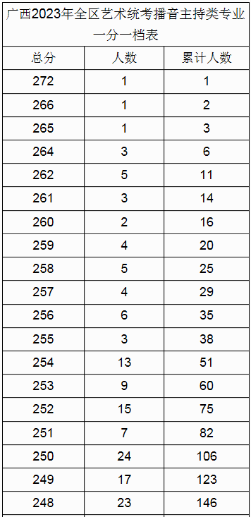 原文标题:广西2023年全区艺术统考播音主持类专业一分一档表