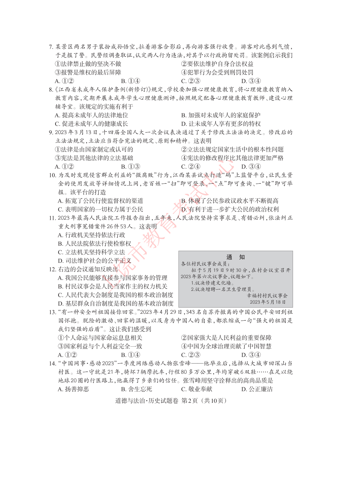 【文档预览】 文档大全网整理发布2023年江西九江中考道德与法治真题及答案(图片版),前五页预览如下: