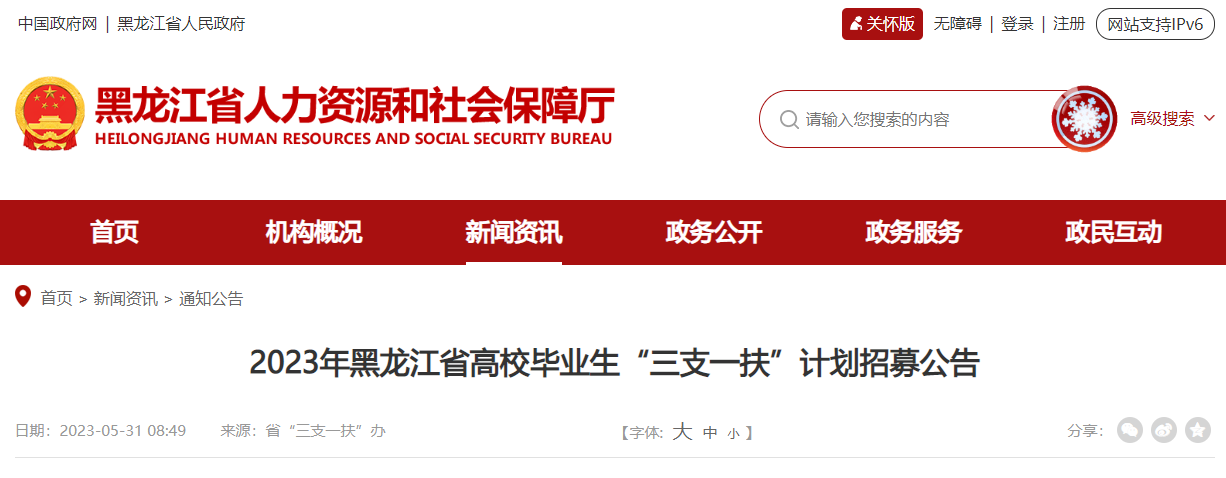 原文标题:2023年黑龙江省高校毕业生“三支一扶”计划招募公告