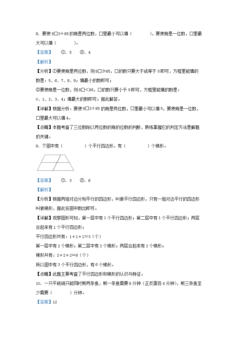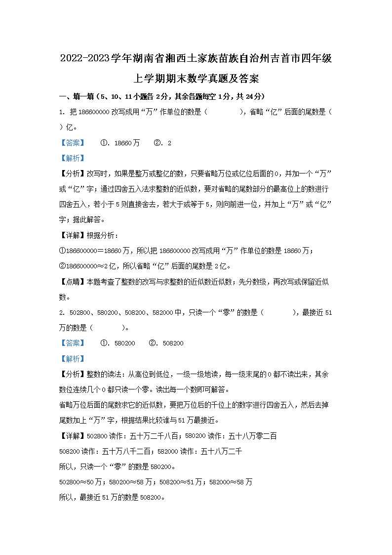 2022-2023学年湖南省湘西土家族苗族自治州吉首市四年级上学期期末数学真题及答案(Word版)10-13