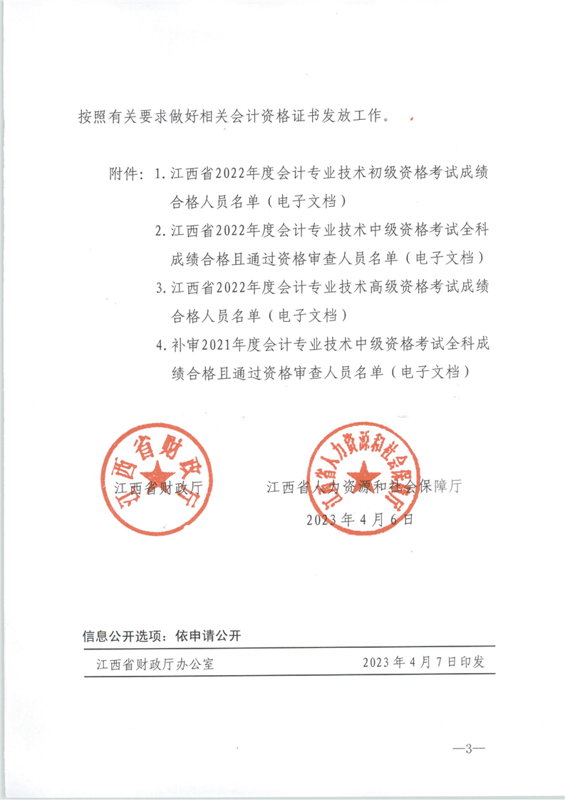 原文标题:关于下发江西省2022年度会计专业技术资格考试和资格审查通过人员名单的通知