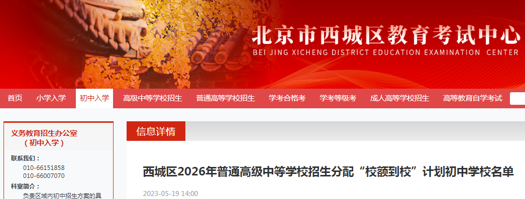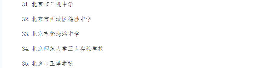 北京西城区2026年普通高级中等学校招生分配“校额到校”计划初中学校名单05-20