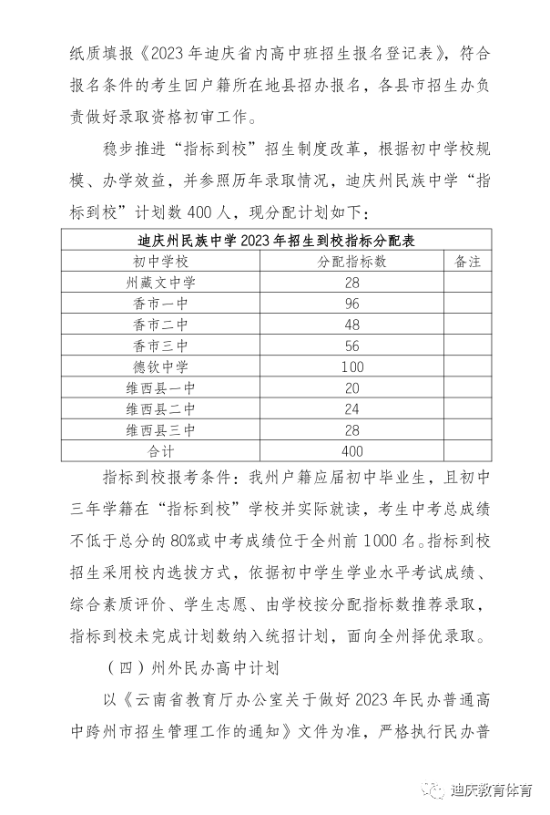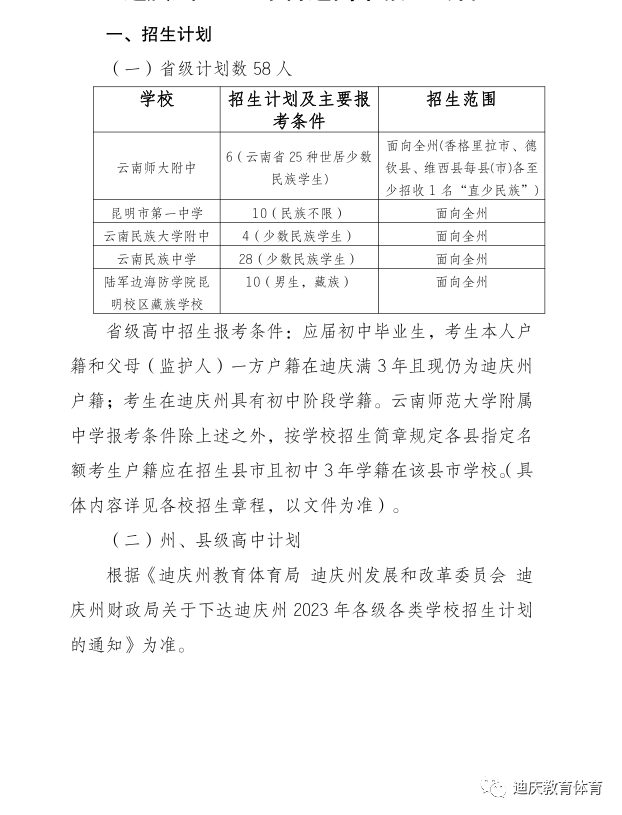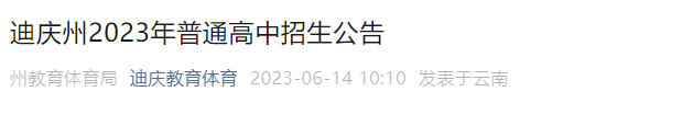 【#中考# 导语】®文档大全网从迪庆教育体育公众号了解到,2023年云南迪庆州普通高中招生公告已公布,相关事宜如下: