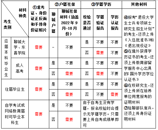 (2)非聊城户籍但在聊城工作的考生(驻聊部队官兵除外),还须上传2022年度在聊城缴纳社保的证明(考生使用个人账号和密码登陆“聊城市社会保险个人网上服务系统”http://services.sdlc12333.com/hsp,点击“打印证明”,下载“缴费证明”上传即可,缴纳期限至少涵盖报名确认期间);