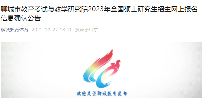 山东聊城市教育考试与教学研究院2023年全国硕士研究生招生网上报名信息确认公告10-29