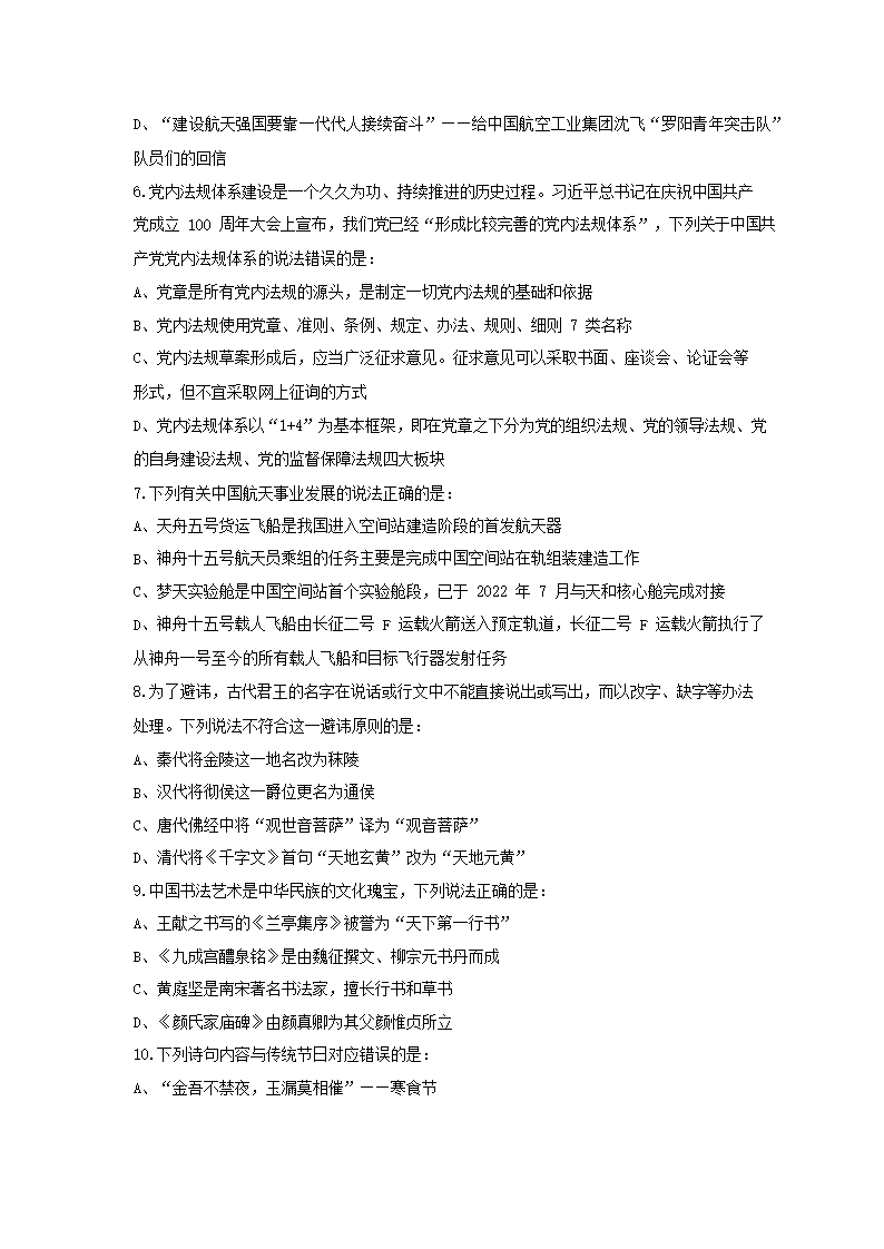 2023年湖北公务员行测考试真题及答案(Word版)09-28