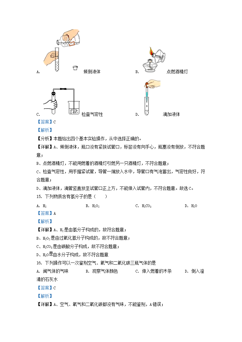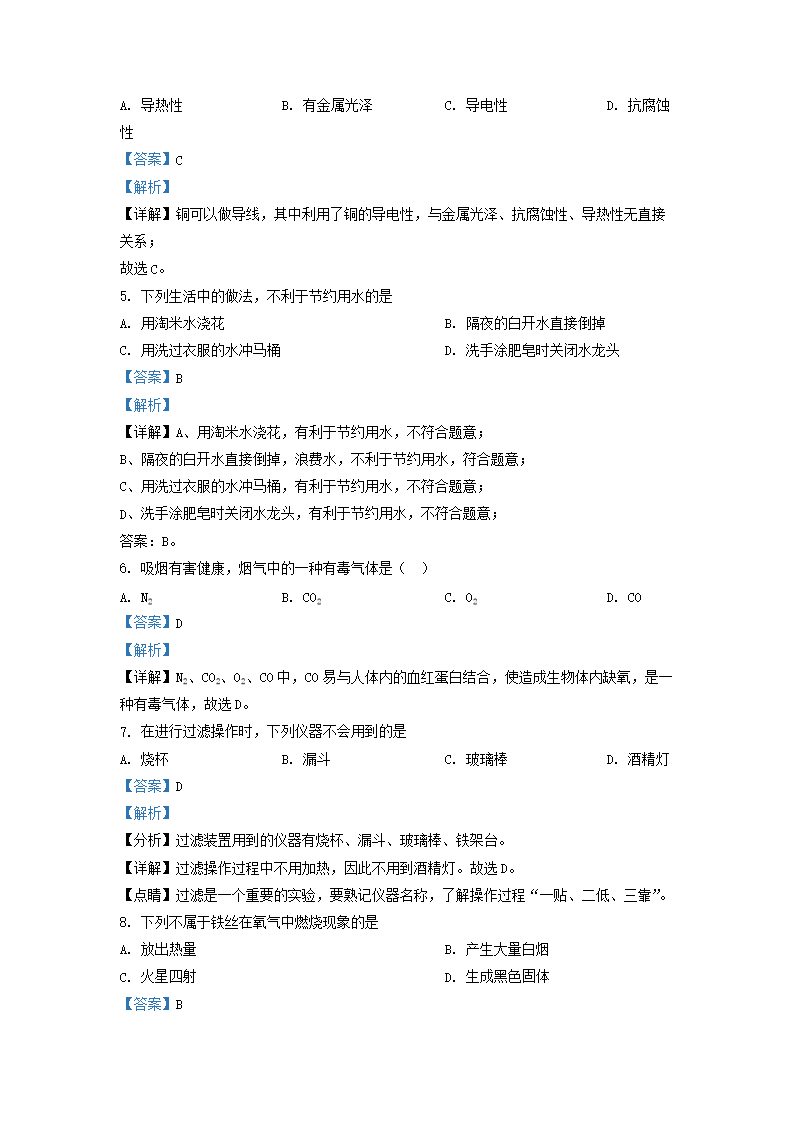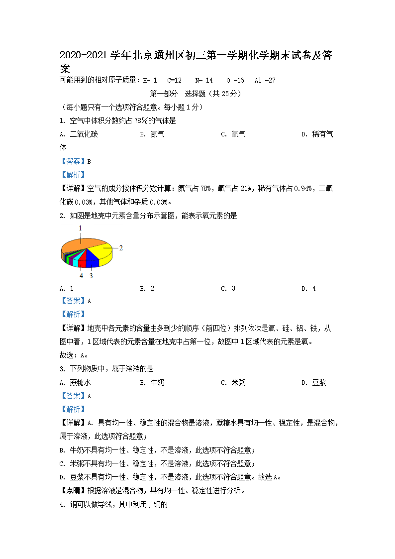 2020-2021学年北京通州区初三第一学期化学期末试卷及答案(Word版)07-22