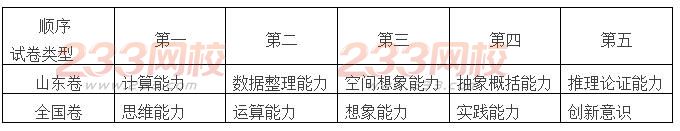 全国卷与山东卷相比,在能力的具体考查上存在很大差异具体体现为:山东卷更加侧重于学生的计算能力和整理能力,对学生的基本功要求比较高;全国卷则侧重于对学生思维能力的考查,更具有开放性。