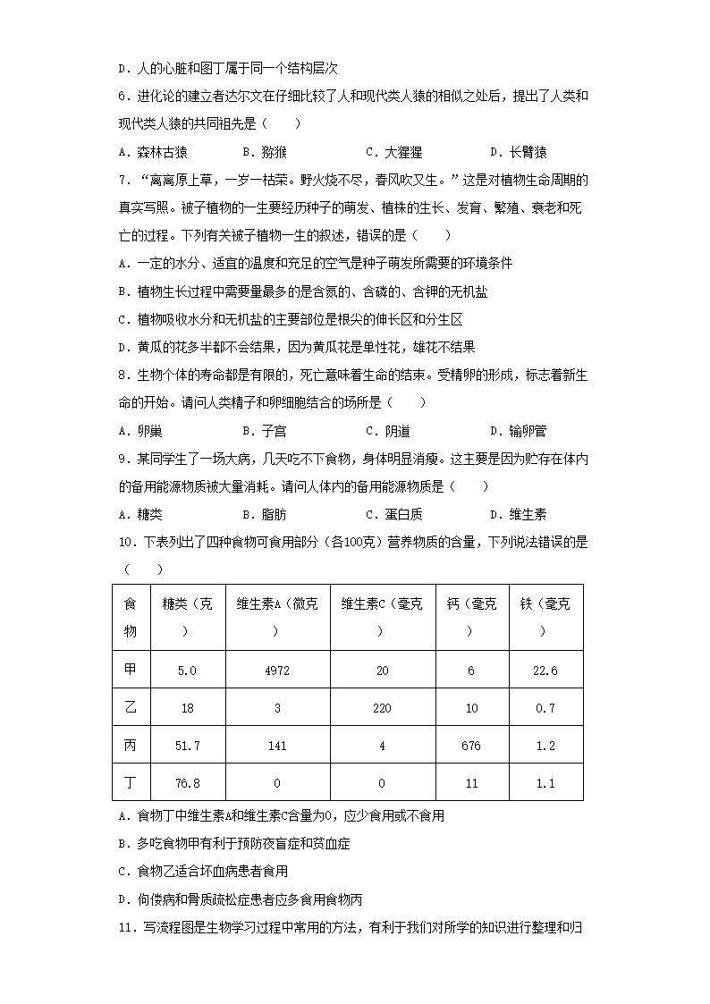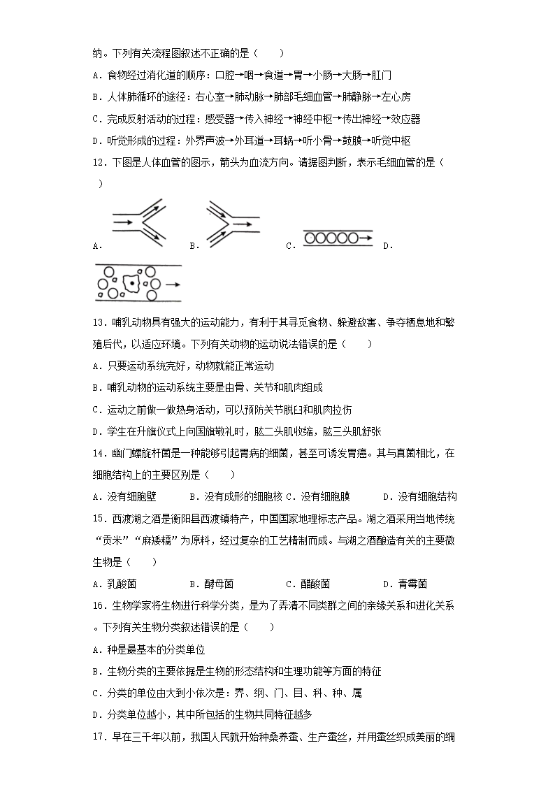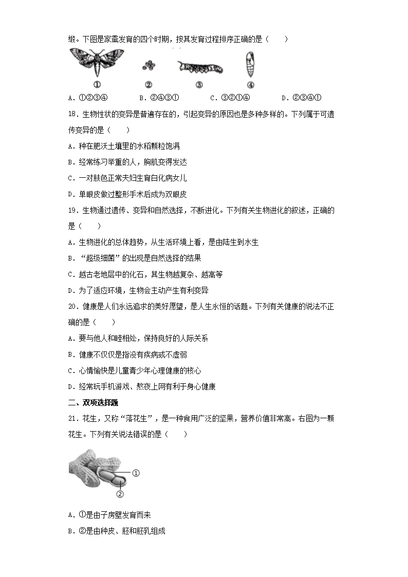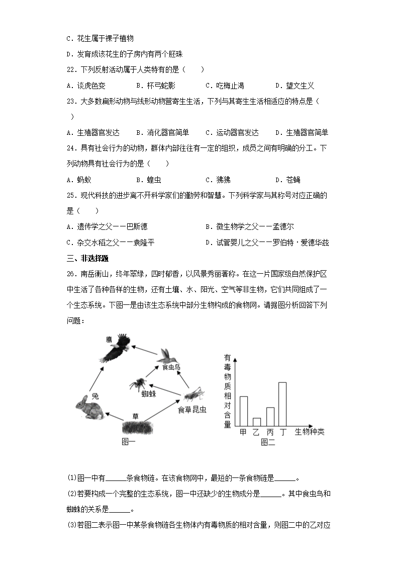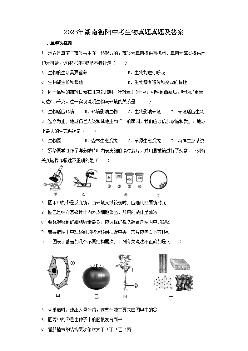 2023年湖南衡阳中考生物真题真题及答案(Word版)07-07