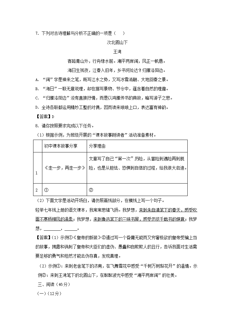 2020-2021学年广东深圳龙华区七年级上册期末语文试卷及答案(Word版)09-27
