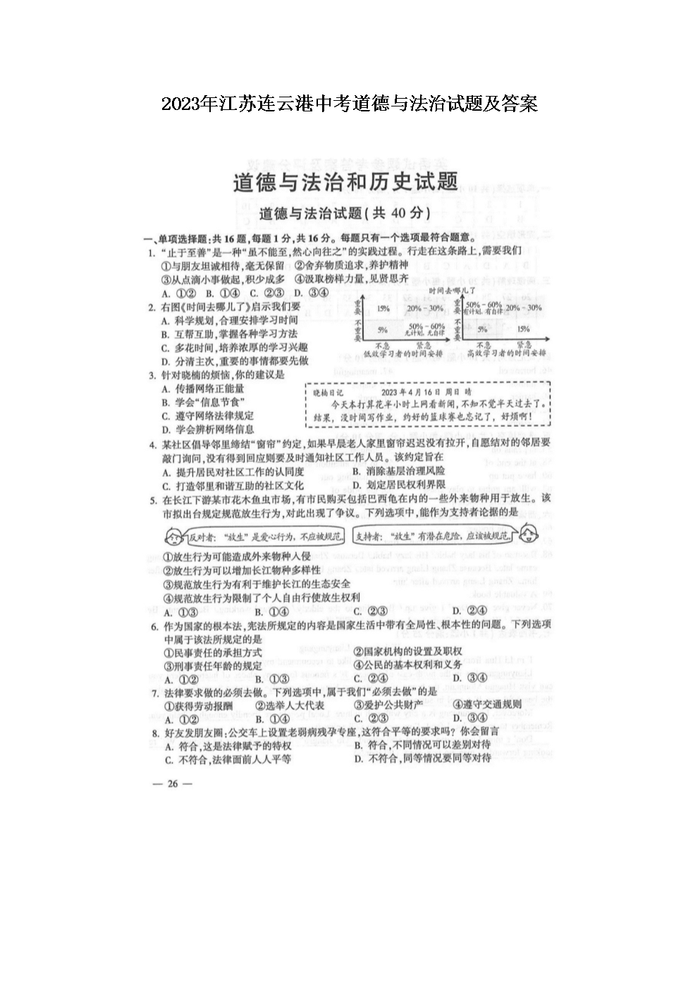 2023年江苏连云港中考道德与法治试题及答案(图片版)06-17
