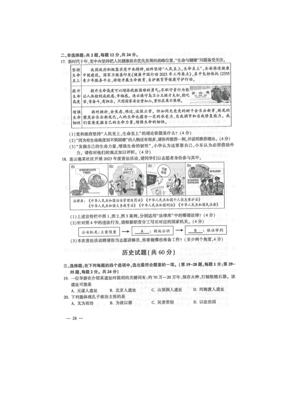 【文档预览】 文档大全网整理发布2023年江苏连云港中考道德与法治试题及答案(图片版),前五页预览如下: